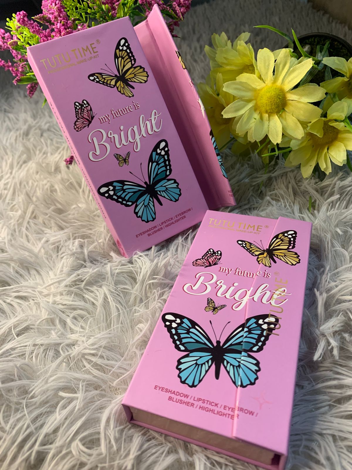 Paleta de maquillaje con 18 sombras, 3 polvos faciales, 3 labiales y aplicador doble. Inspirada en el mundo de las mariposas y la fantasía, esta presentación es ideal para looks creativos, juveniles y llenos de color.